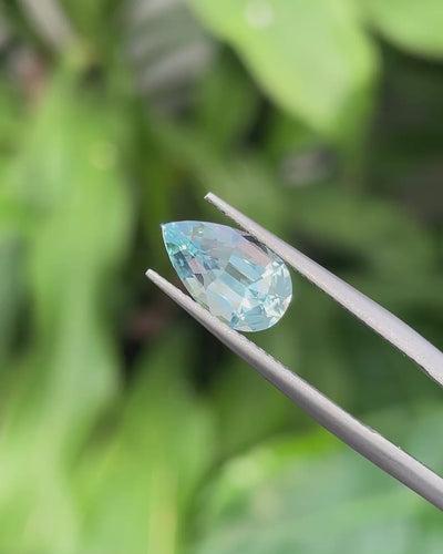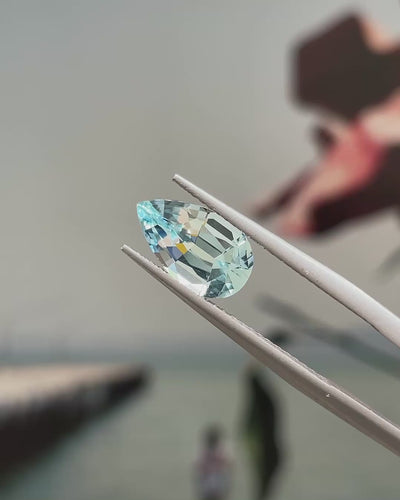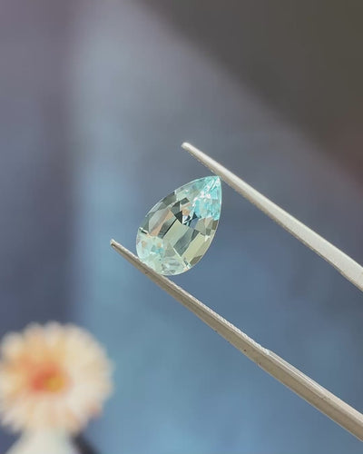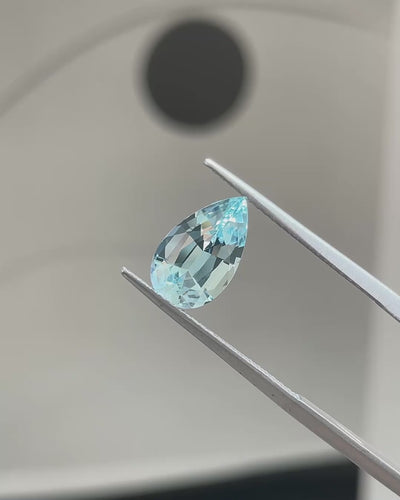 Fresh & Luminous, this Precision-Cut aquamarine displays a bright blue with excellent transparency and crisp brilliance. Its perfectly proportioned Pear cut enhances light return and gives the stone an elegant, fluid presence that will work beautifully in a sophisticated ring or pendant.Β