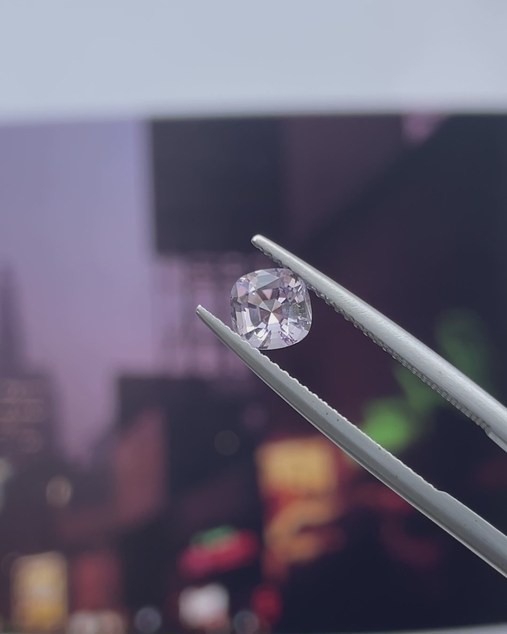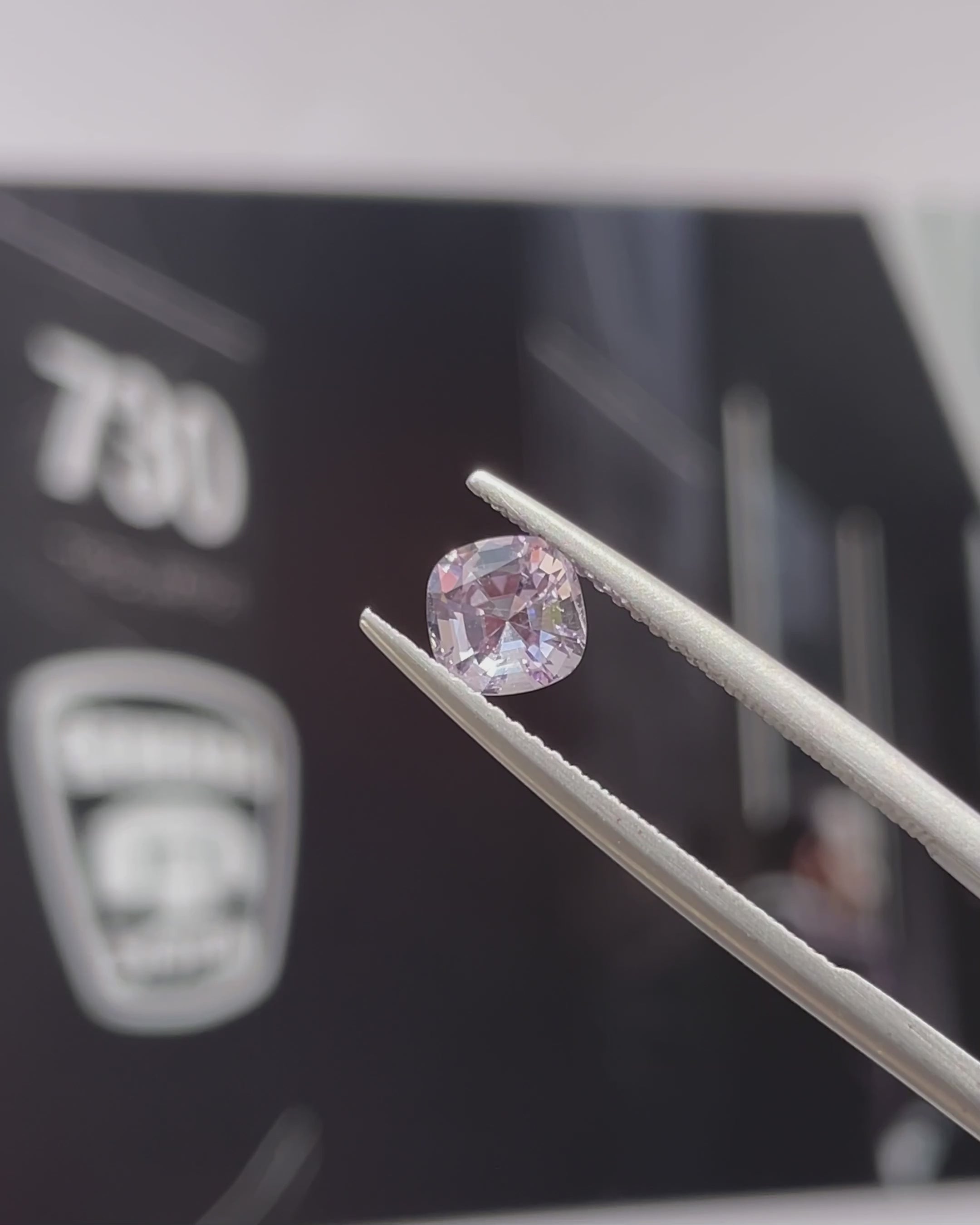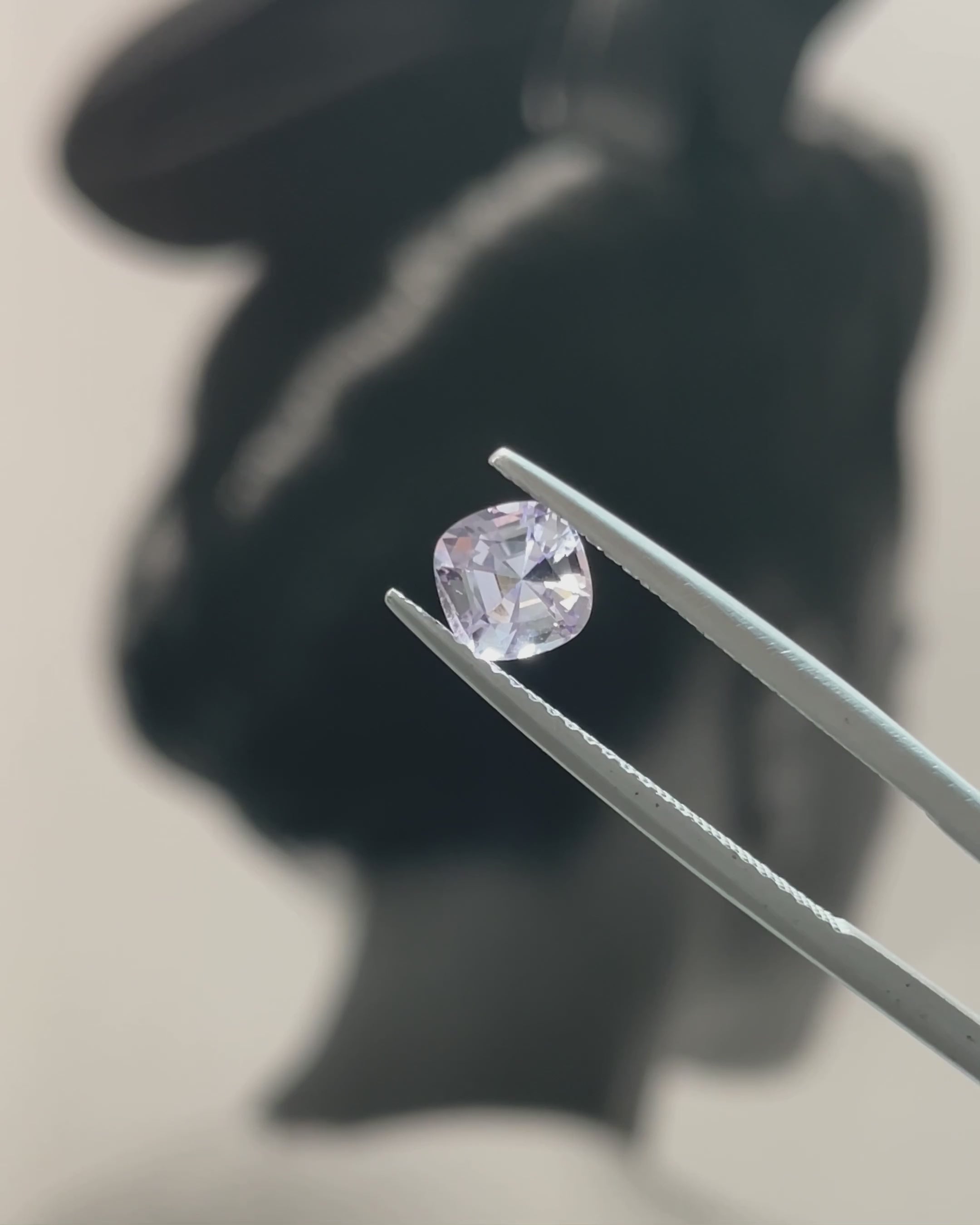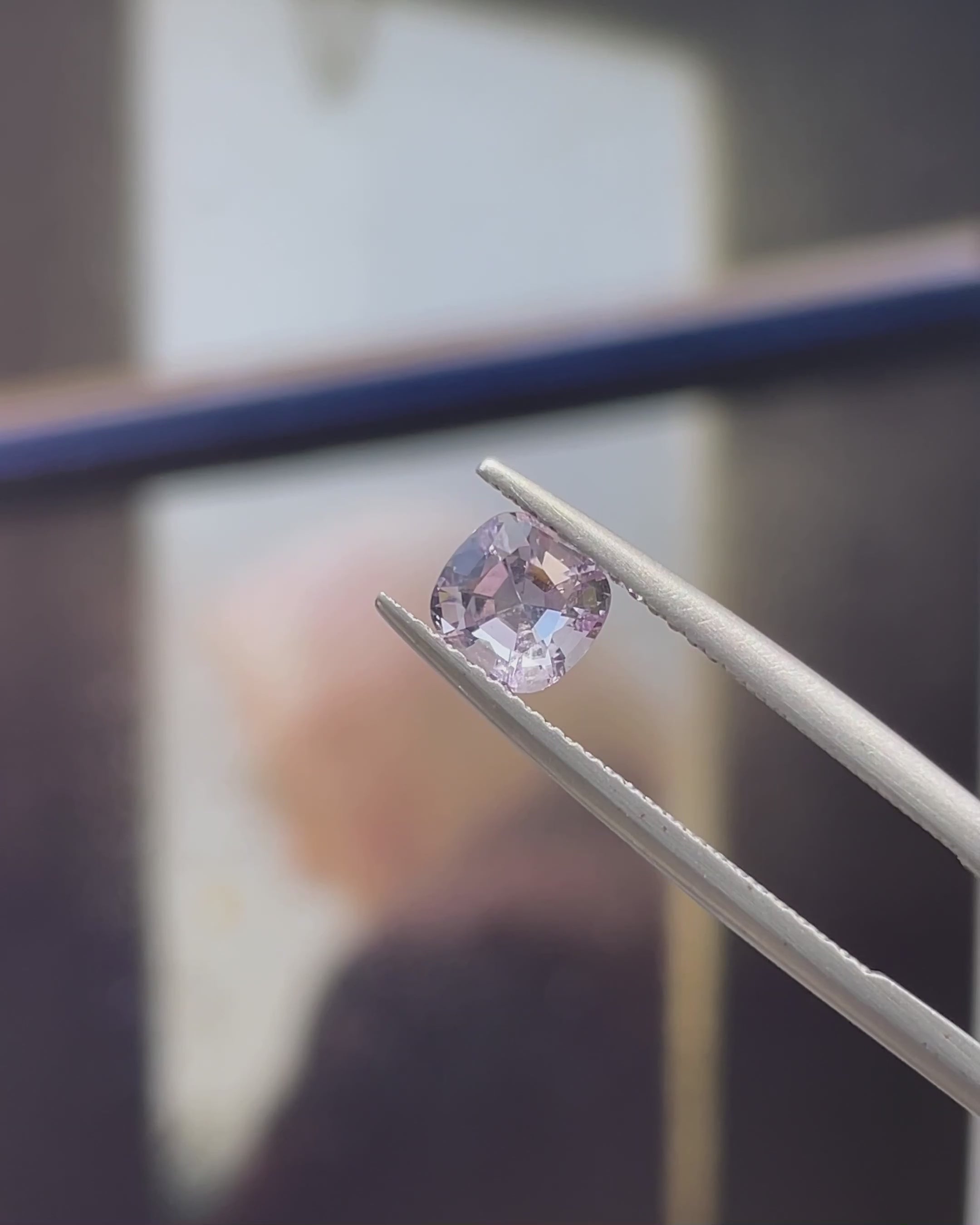 Cut in a Precision Square Cushion, this Lilac Spinel from Myanmar displays a delicate, refined colour, beautifully highlighted by its harmonious, perfectly balanced faceting.