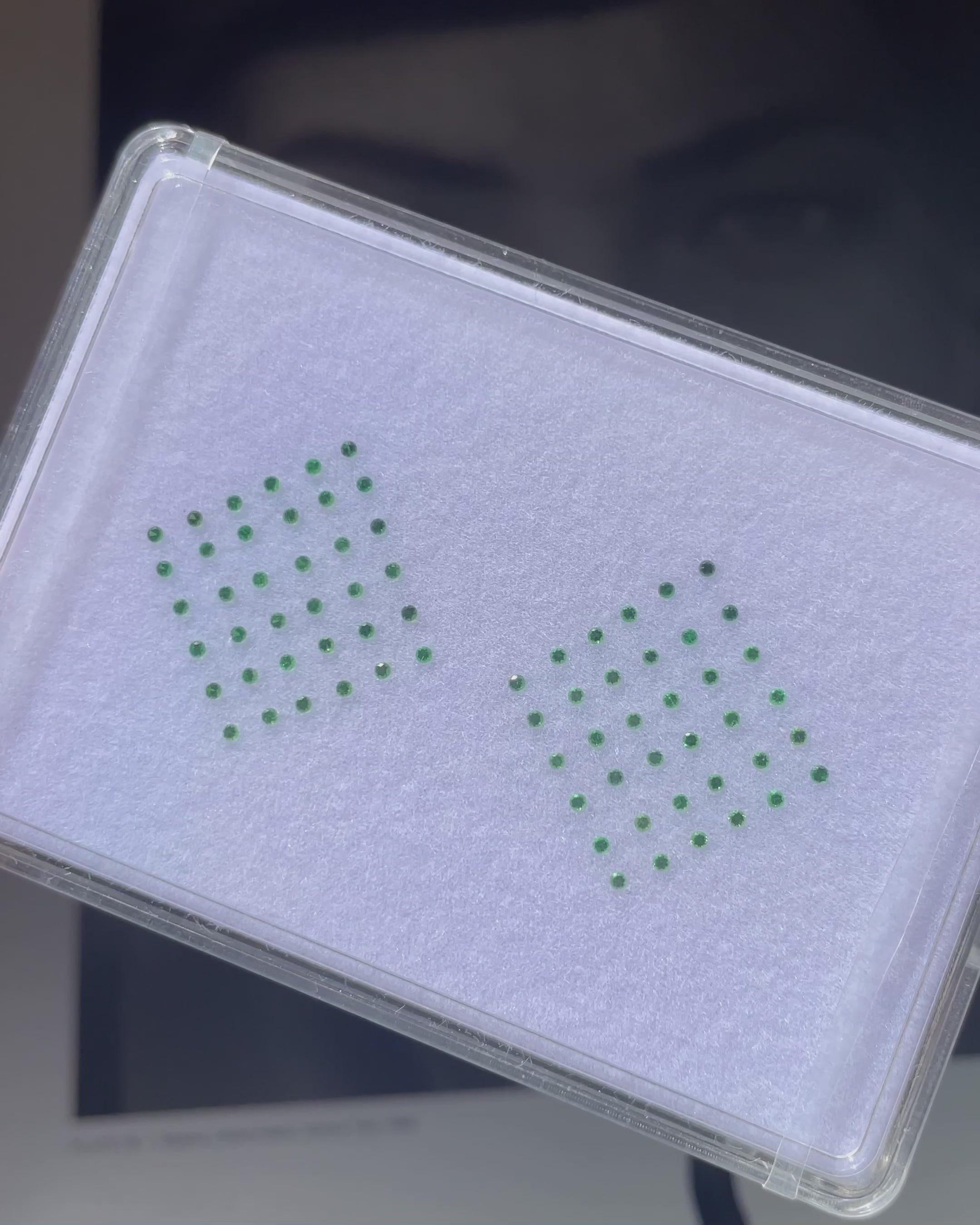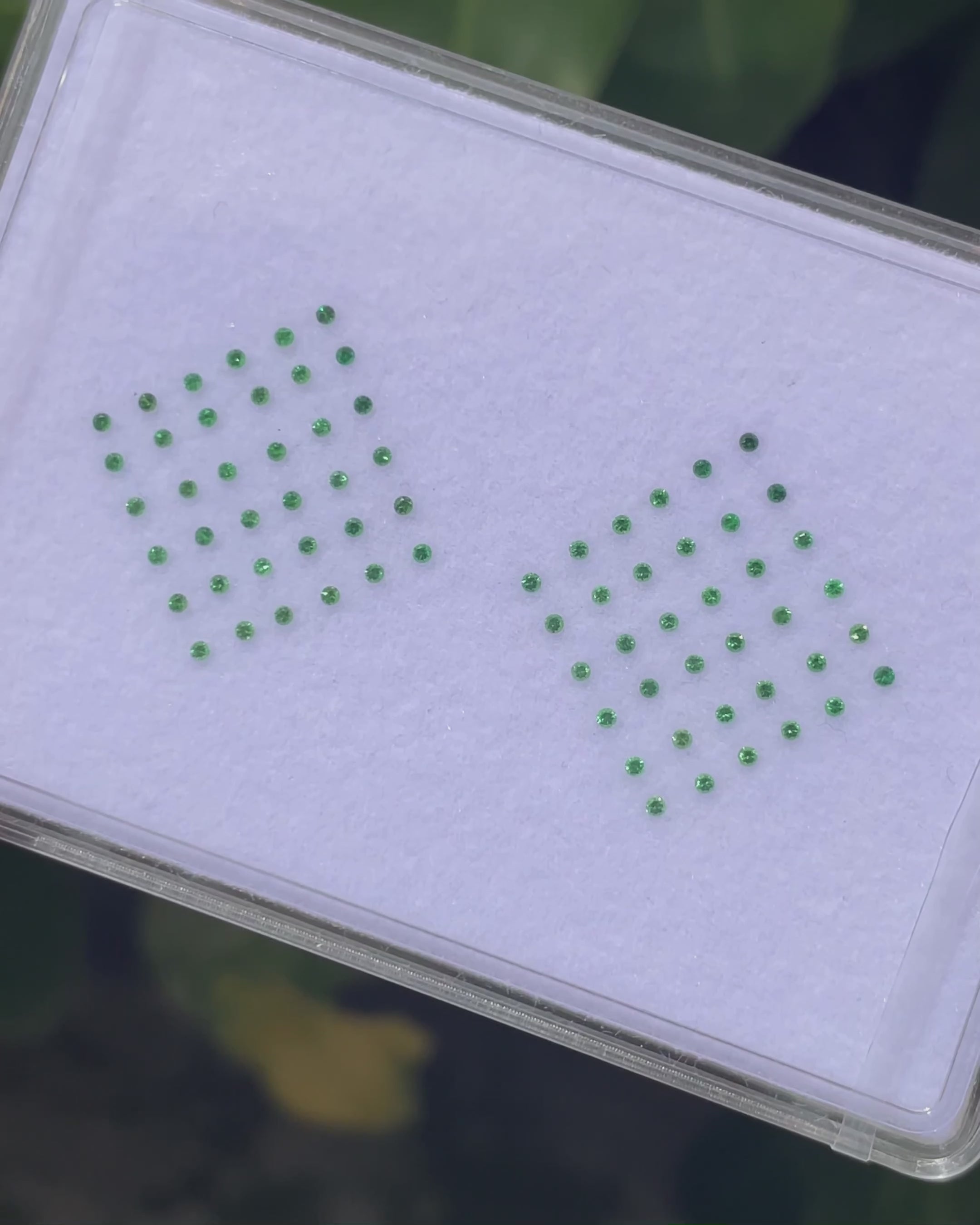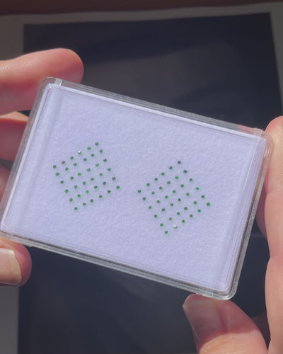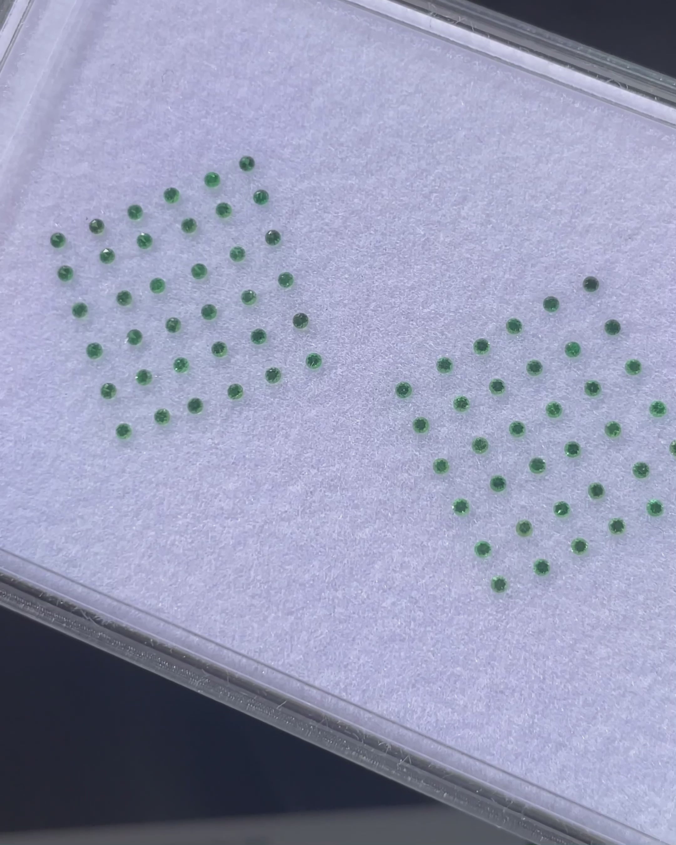 An electrifying ensemble of 72 Round Brilliant Tsavorites in an exceptional shade of Green — bright, crisp, and saturated. Perfectly sized for pavé or precision detailing in bespoke designs.