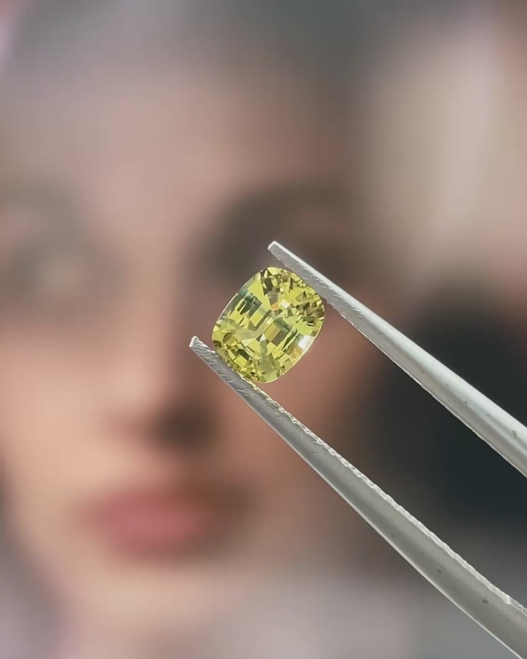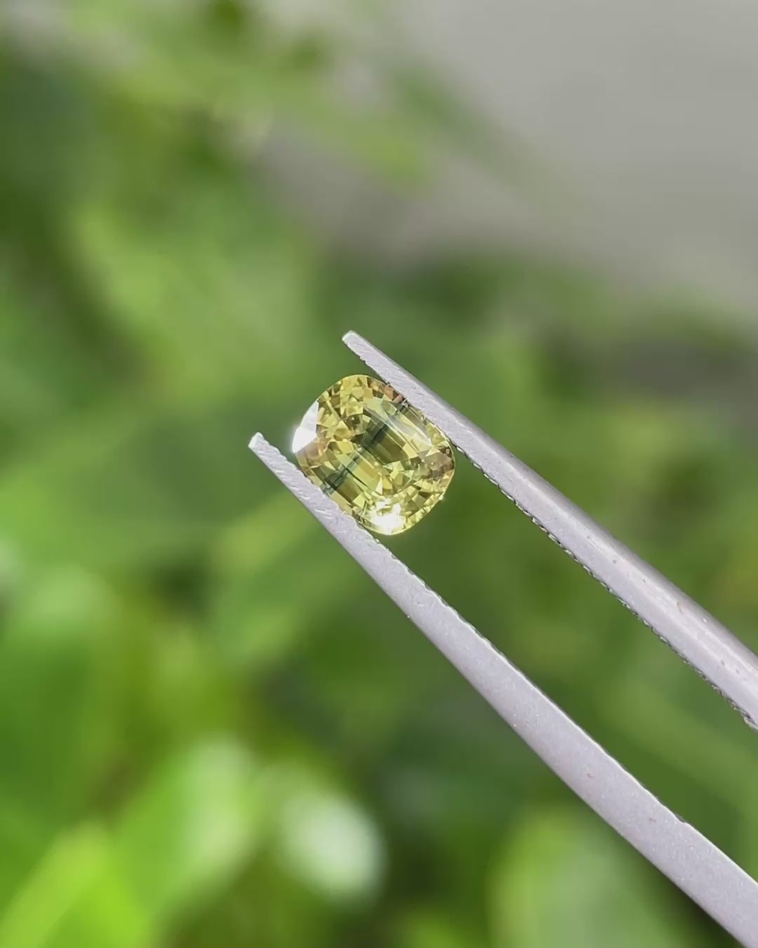 One-of-a-kind Unheated Sapphire from Australia with a striking Canary Yellow hue and remarkable, almost aquatic clarity. A bold streak of green zoning adds a unique and unmistakable character.