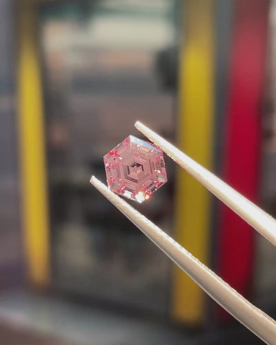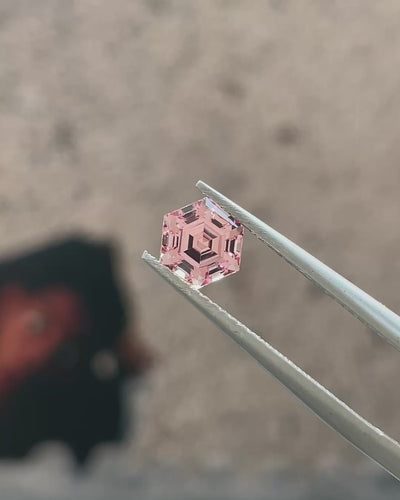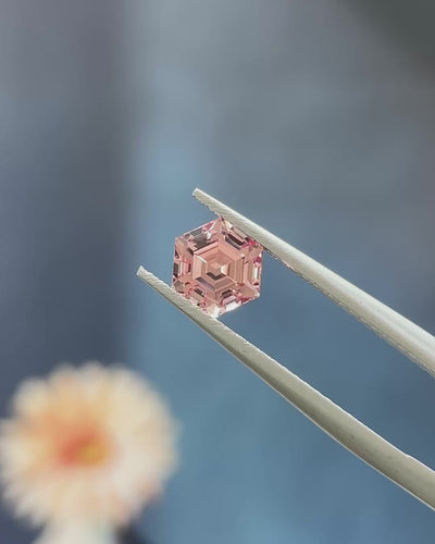 Delicate yet Fiery, this Mahenge garnet exhibits a refined Peachy-Pink hue, in a distinctly Malaya-inspired register. An elegant Coral-Pink in ambient light, that shifts under direct light into a brighter, more electric pink with subtle reddish undertones and triggers effervescent fire.