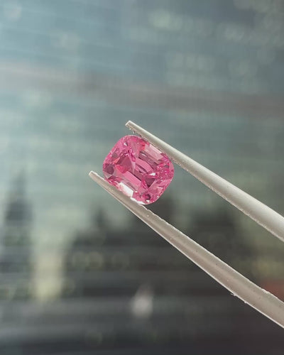 Slightly purplish in ambient/indoor light, this Pink Mahenge Spinel transforms outdoors. Its high chromium content, reacting intensely to UV, pulls the colour into redder, more dramatic territory the moment sunlight hits it. A hallmark of true Mahenge.