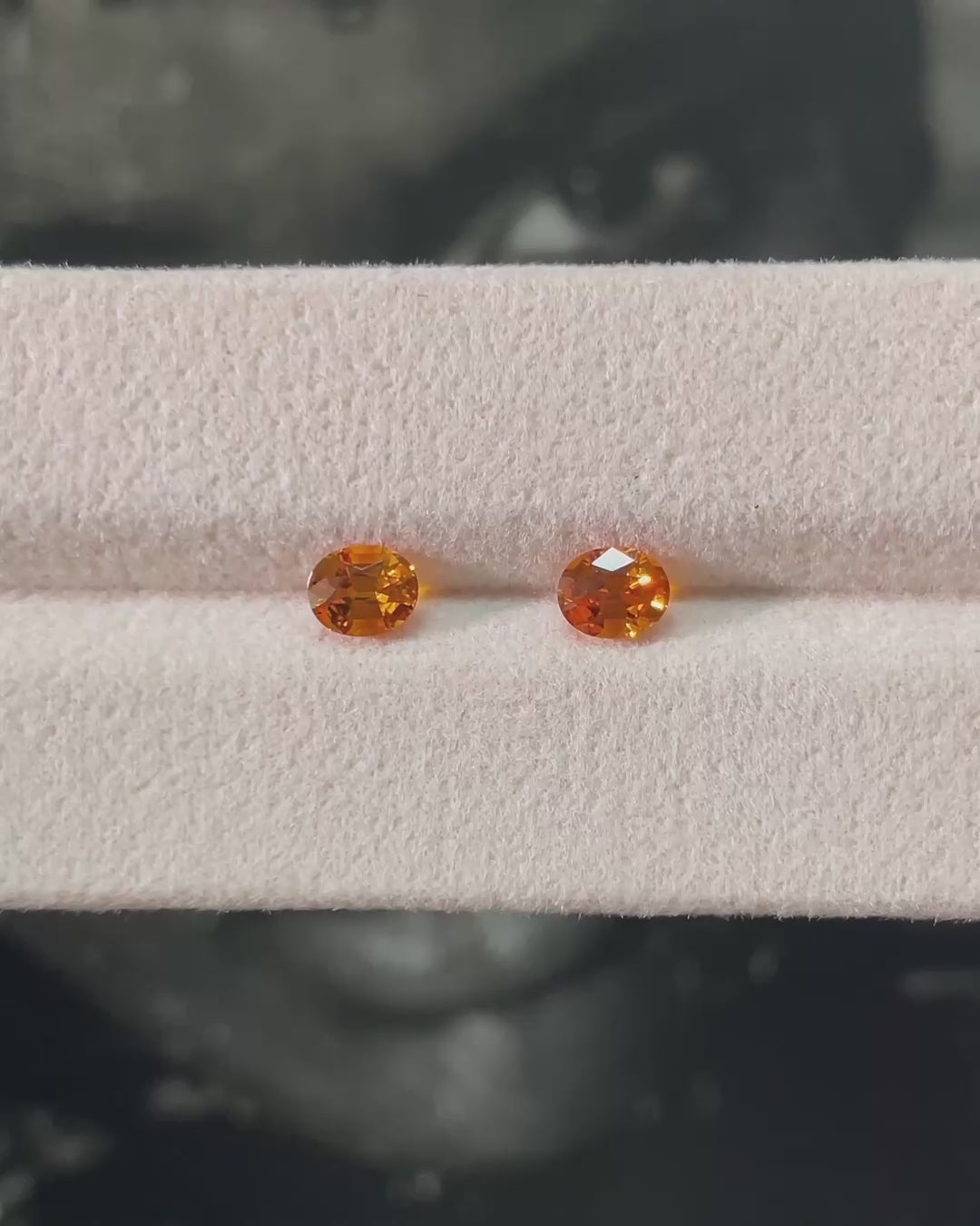 Clean and vividly bright, these Orange Sapphire Ovals have been precision-recut to achieve a harmonious match and remarkable brilliance.
