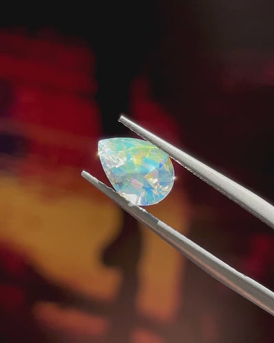 Ethereal & Radiant, this Rainbow Moonstone displays a crisp white body colour animated by a lively adularescence. Precision recut to optimise symmetry and light return, it offers a refined, magical presence.