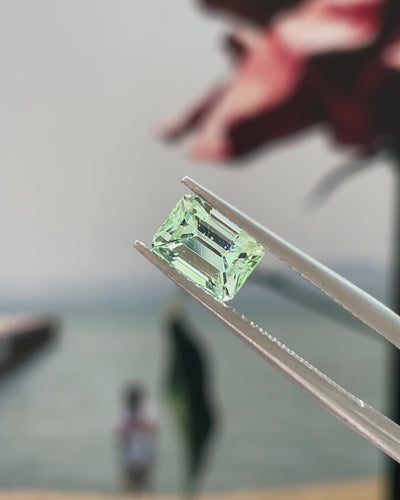 A luminous Mint Tourmaline that radiates a gentle, refreshing glow. Its elegant, aquatic Mint green comes alive with a subtle brilliance that feels effortlessly refined.