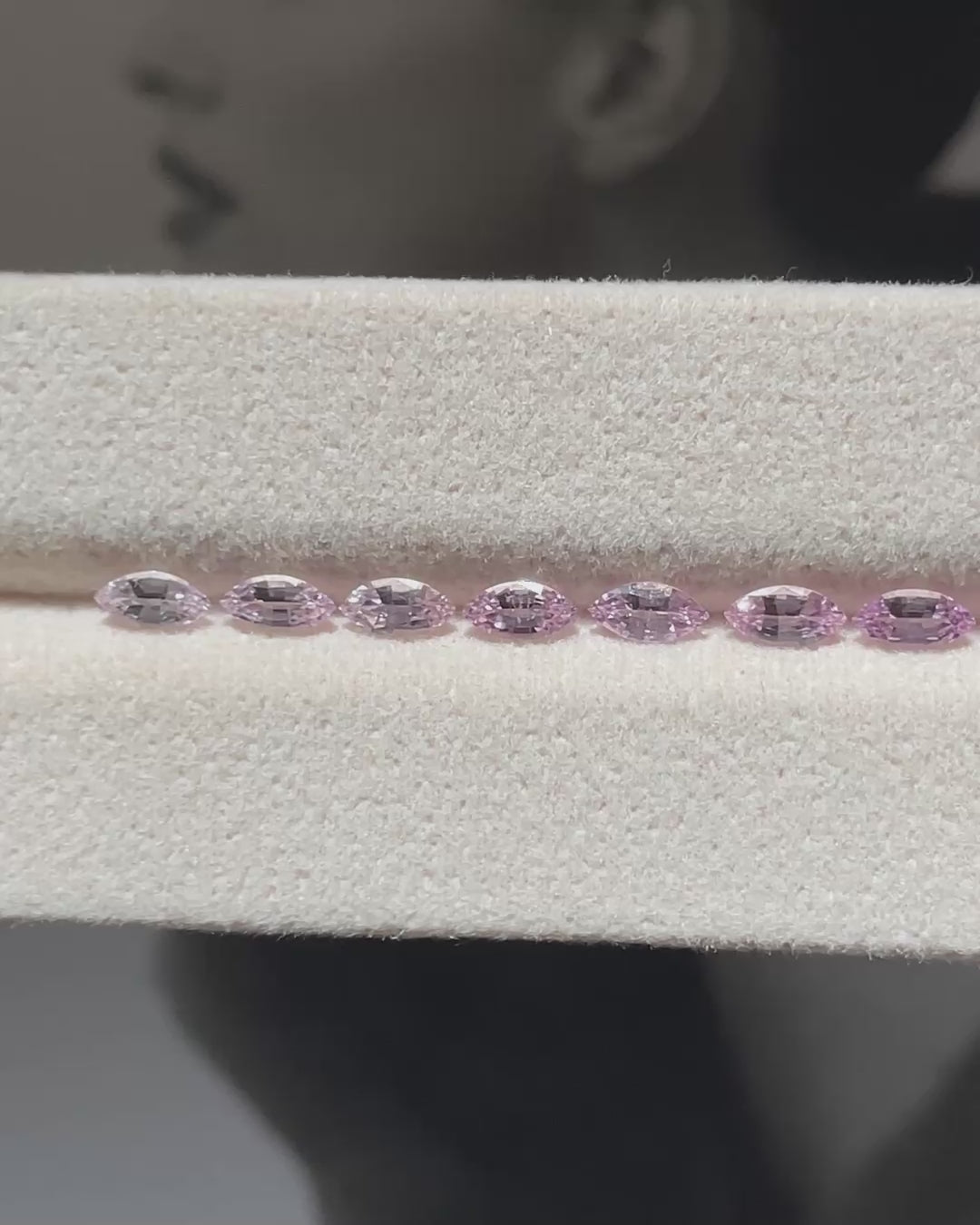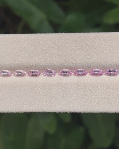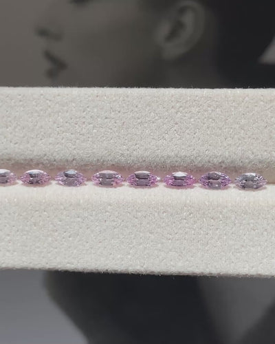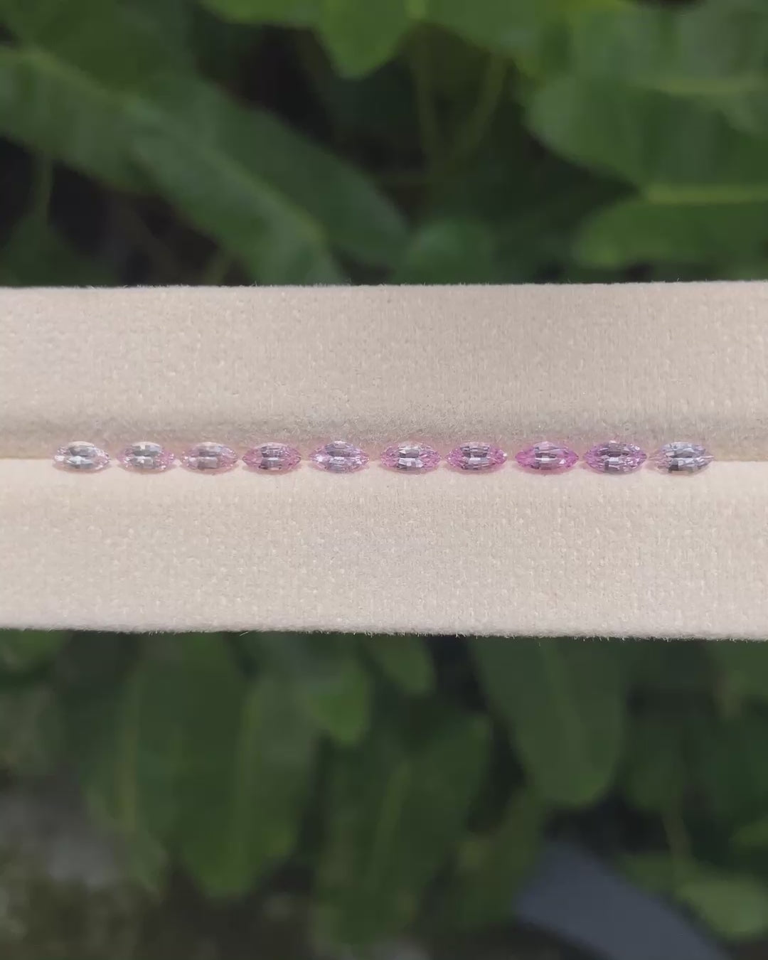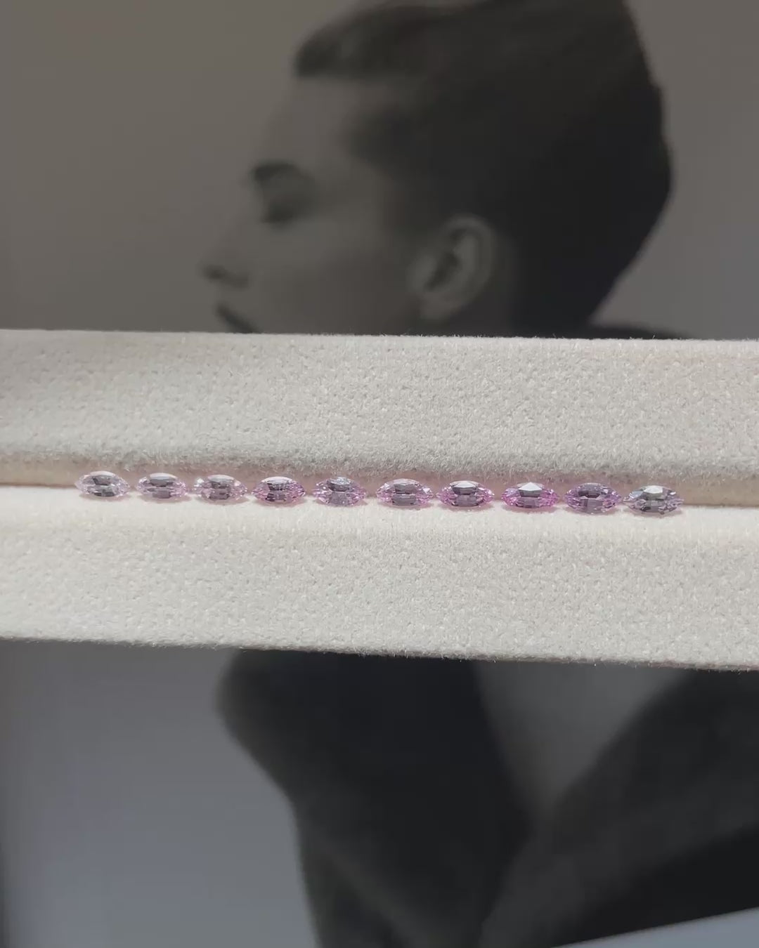 A refined suite of 10 marquise sapphires arranged in a soft Pink Gradient. Their delicate tones lend a graceful charm to any bespoke creation.