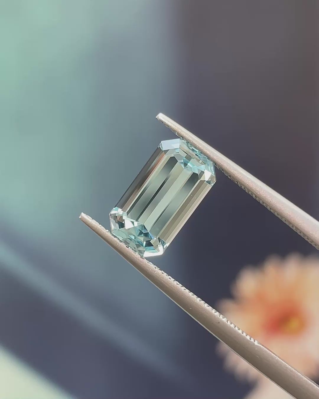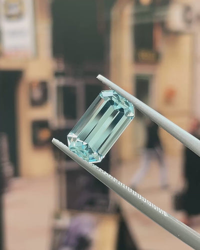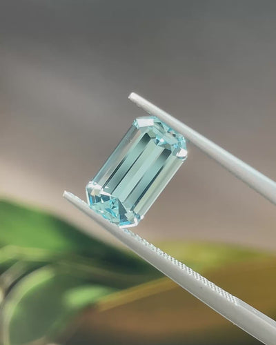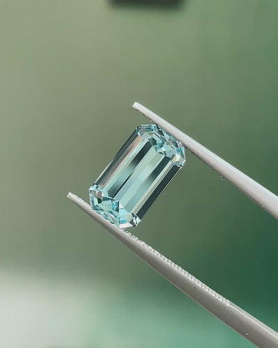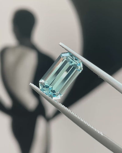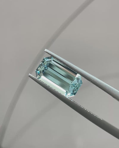 Cool & Elegant, this Precision-Cut Aquamarine from Madagascar displays a delicate, pure blue with bright, mirror-like flashes across its long step facets. Borderline loupe clean and very lively, it delivers a classic, sophisticated Aquamarine character, beautifully suited to distinguished jewellery designs.