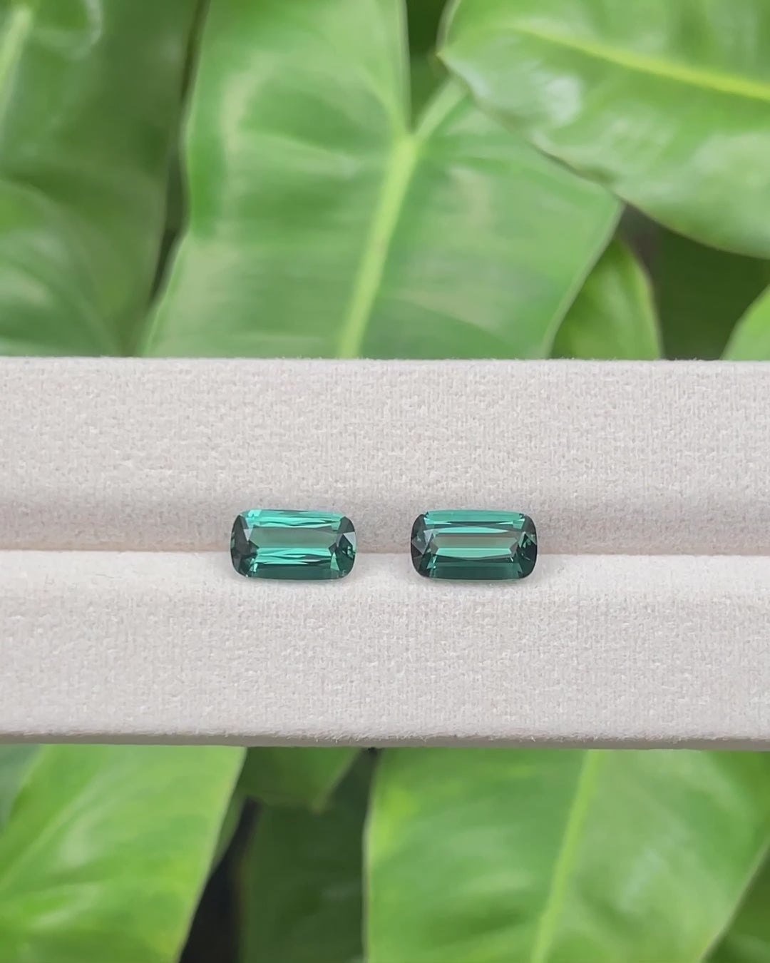 A fabulous Matching Pair of Lagoon Tourmalines from Afghanistan β precision cut cushions with vivid, saturated colour and outstanding clarity. Beautifully balanced in shape and tone, theyβre ideal for a standout pair of elegant earrings or a bespoke two-stone ring.