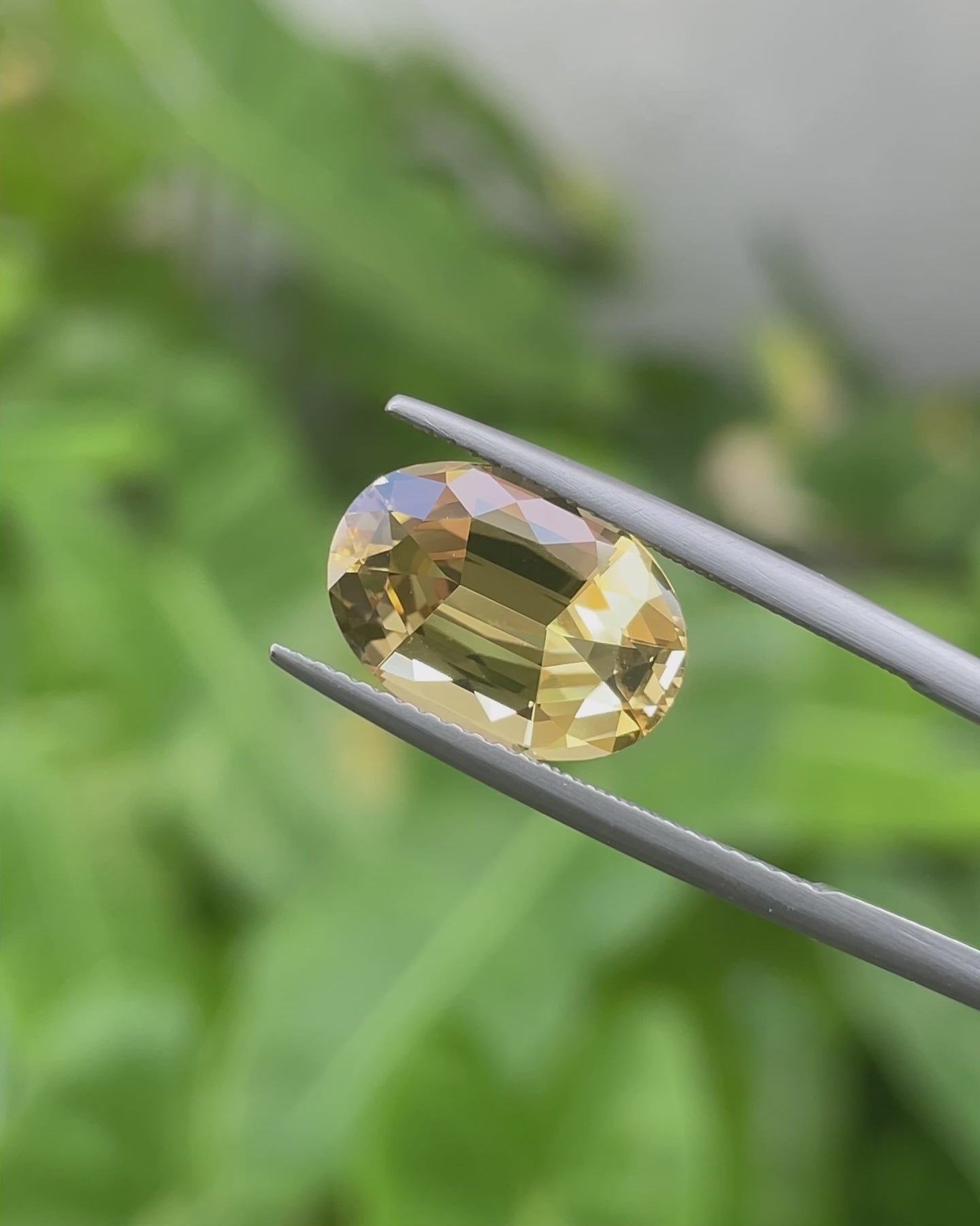 This particular stone is exceptionally clean and showcases a strong, rich golden hue.