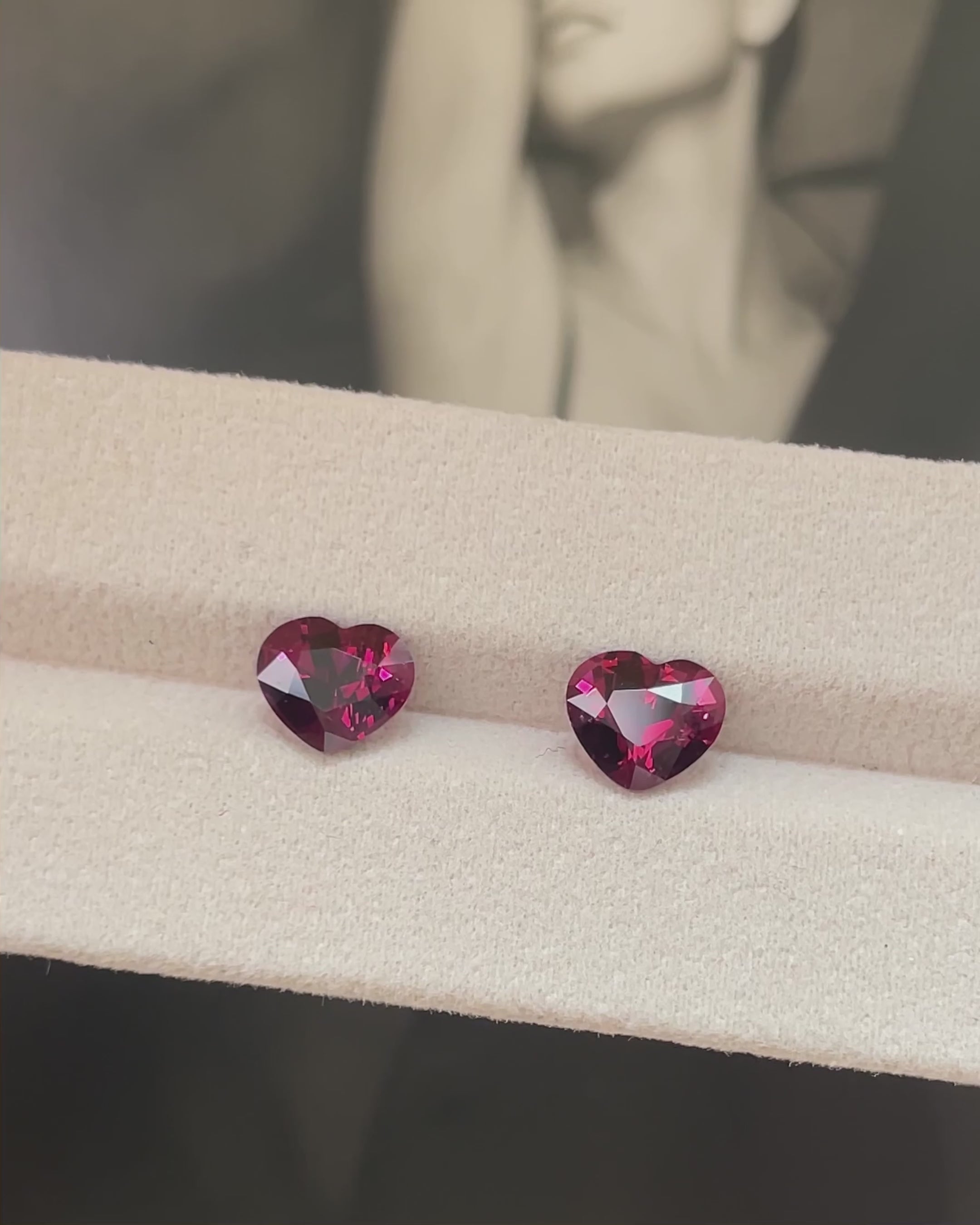 Classy Pair of beautifully matched Rhodolite Garnets precision-cut into lovely & memorable Hearts 💖💖