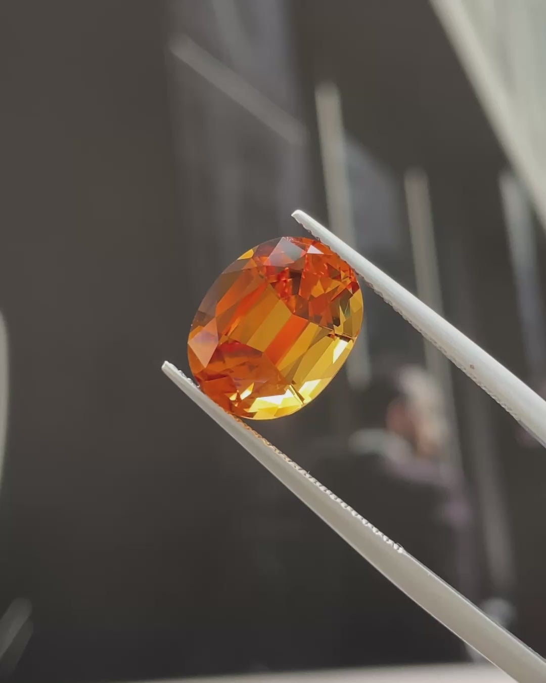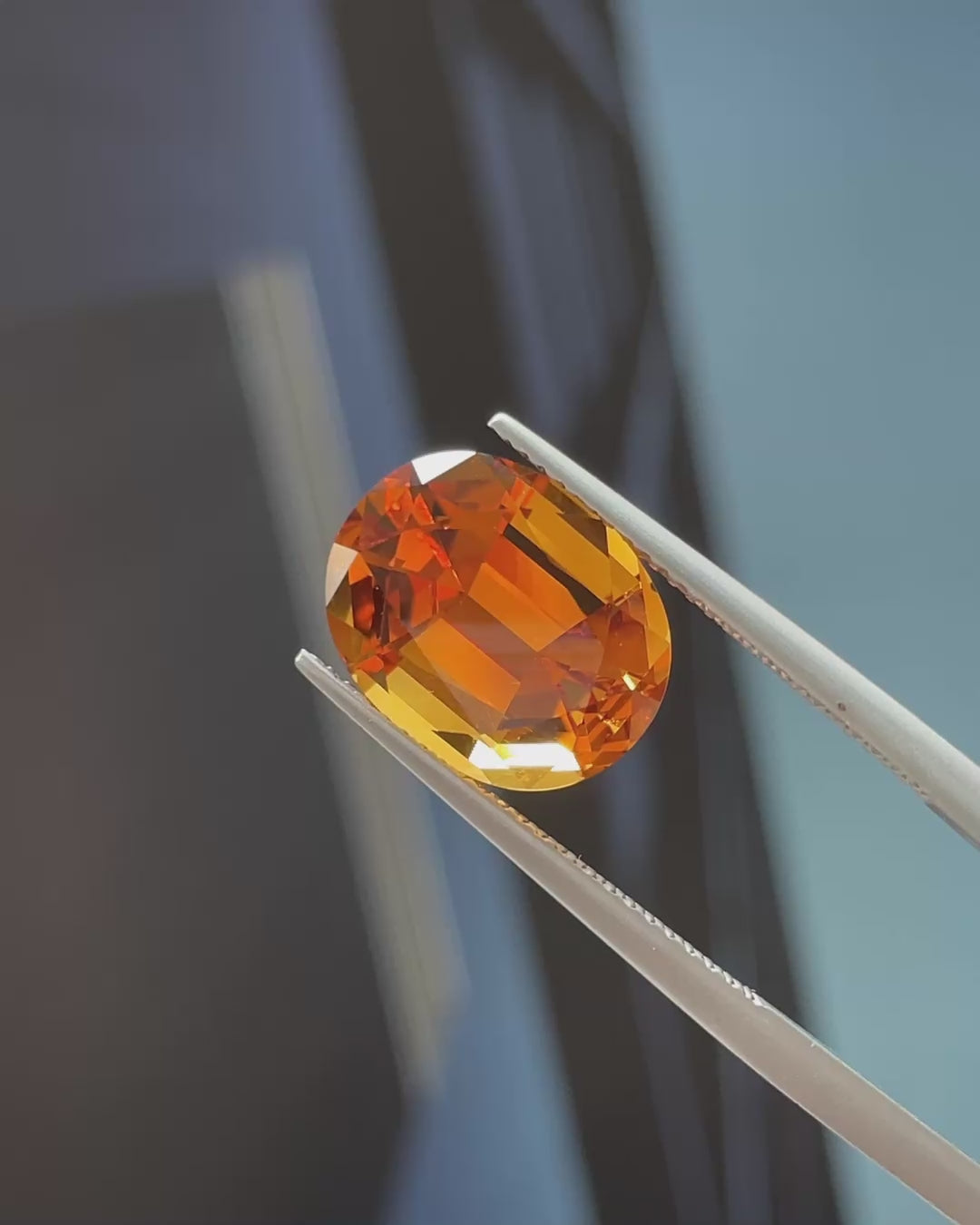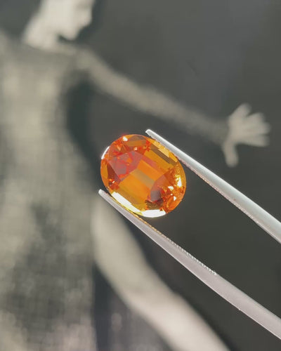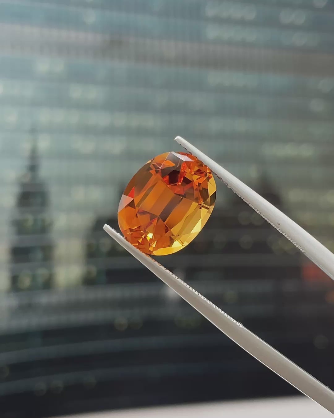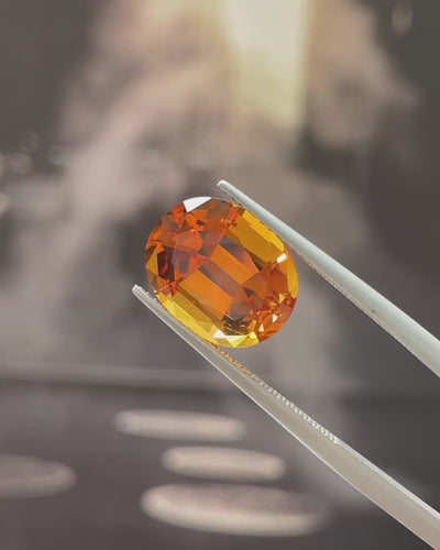 A flattering Citrine showcasing a rich Mandarin-orange glow, full brilliance, impeccable cut and flawless clarity.