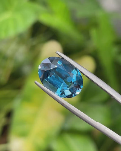 Richly saturated, this refined 6.47 ct London Blue Topaz boasts crisp precision-cut facets and a harmonious oval shape, perfect for an elegant, majestic statement piece.