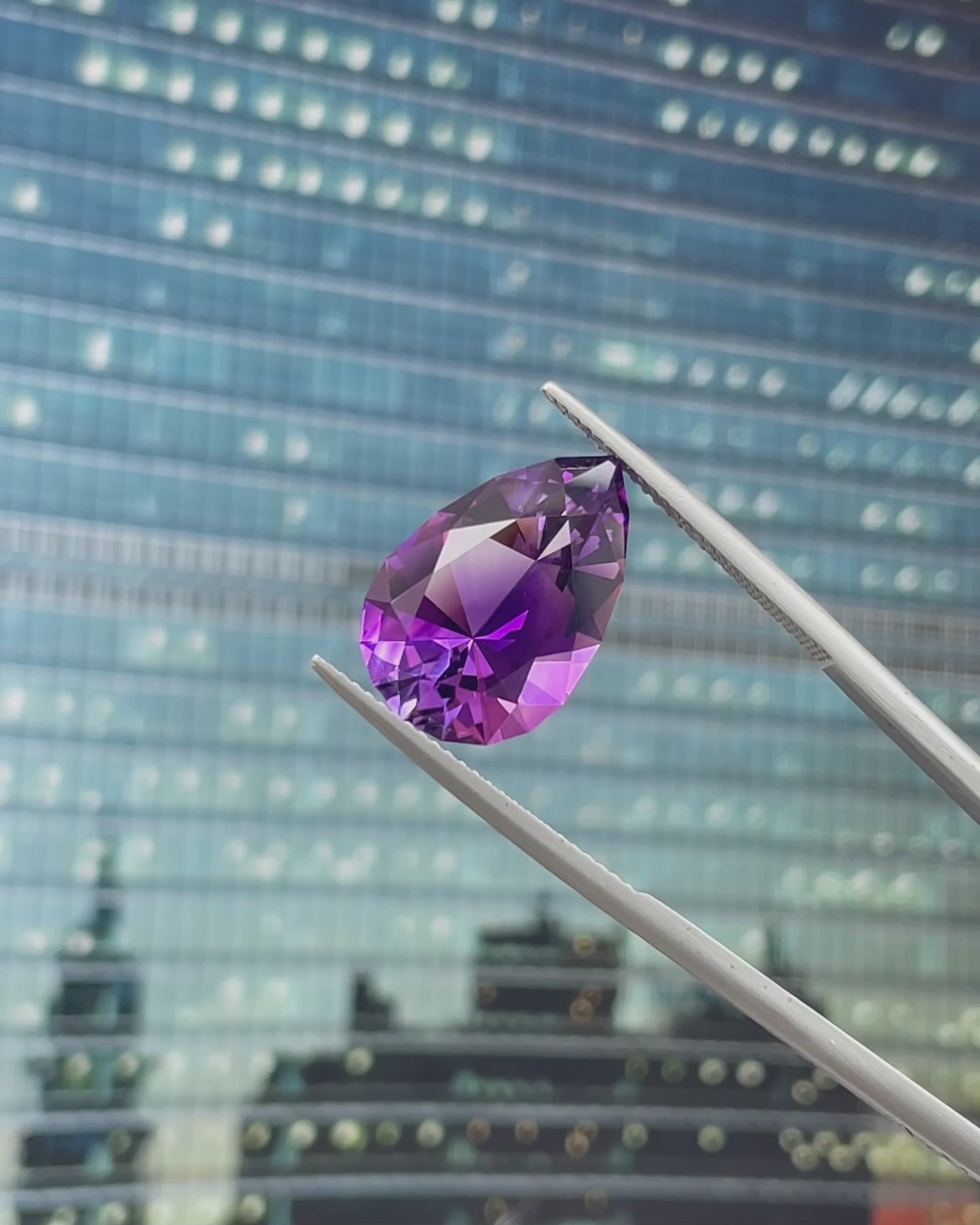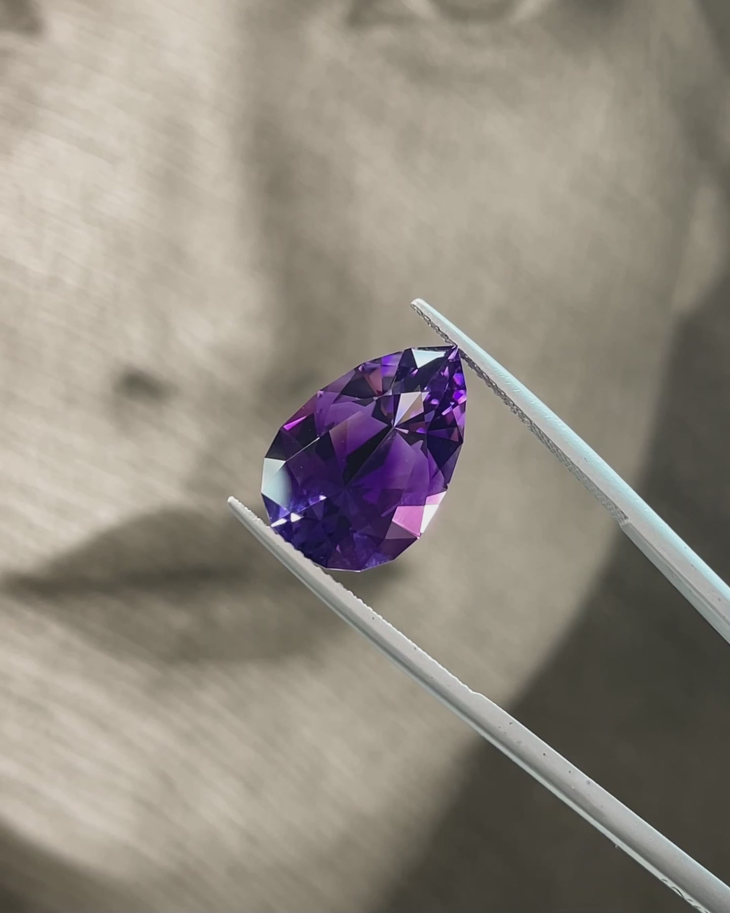 This bold 7.90 carat Amethyst is a true statement piece. Precision-cut into a striking pear shape, it boasts razor-sharp symmetry and a finish that enhances every facet of its regal purple hue. The cut lends the stone a unique charisma — confident and elegant, with crisp lines and brilliant light return that catch the eye and hold it.
